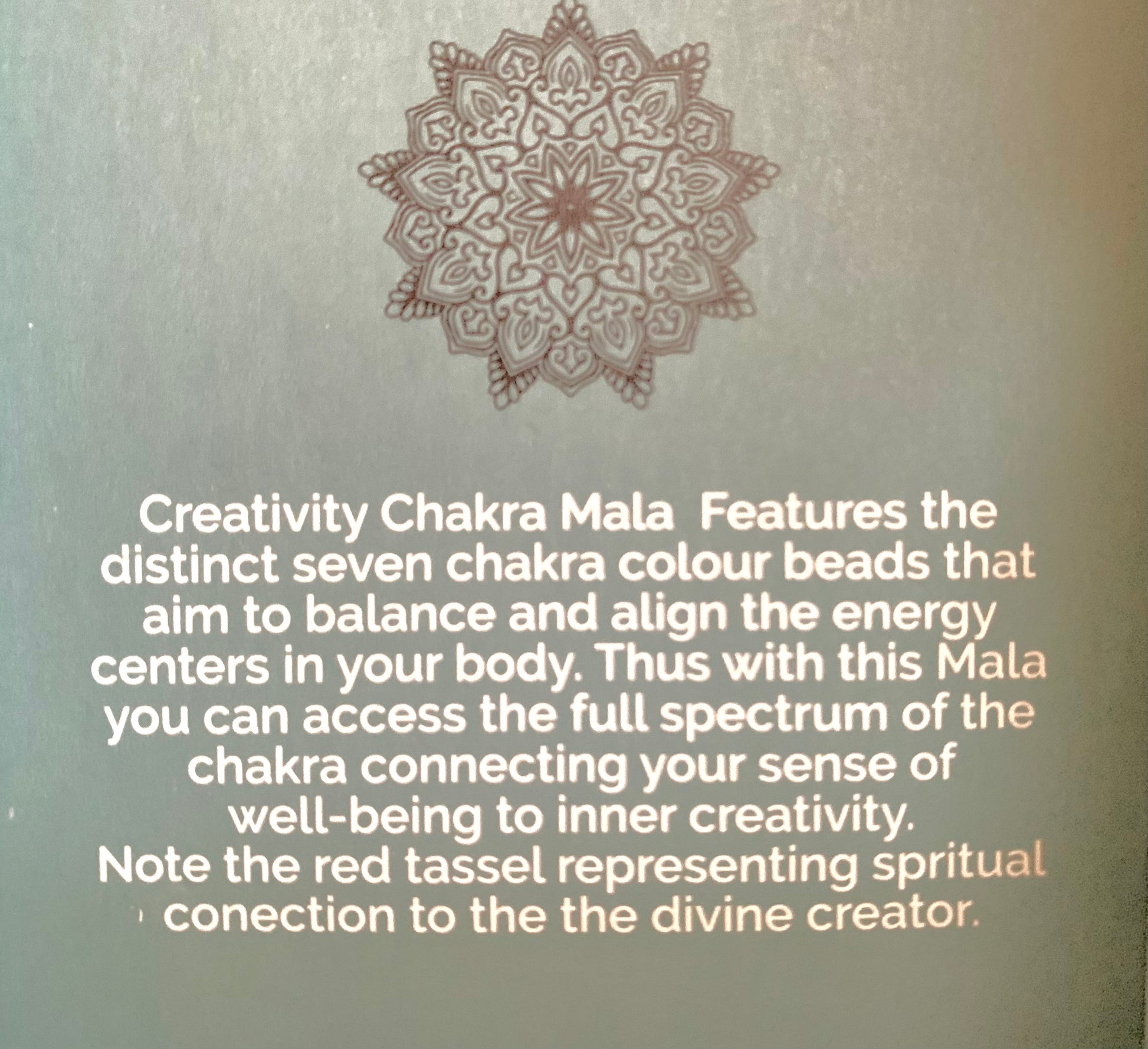 ”Seitsemää kehon enegiakeskusta, chakraa symboloivat värit herättelevät luovuutta ja tuovat tasapainoa.”